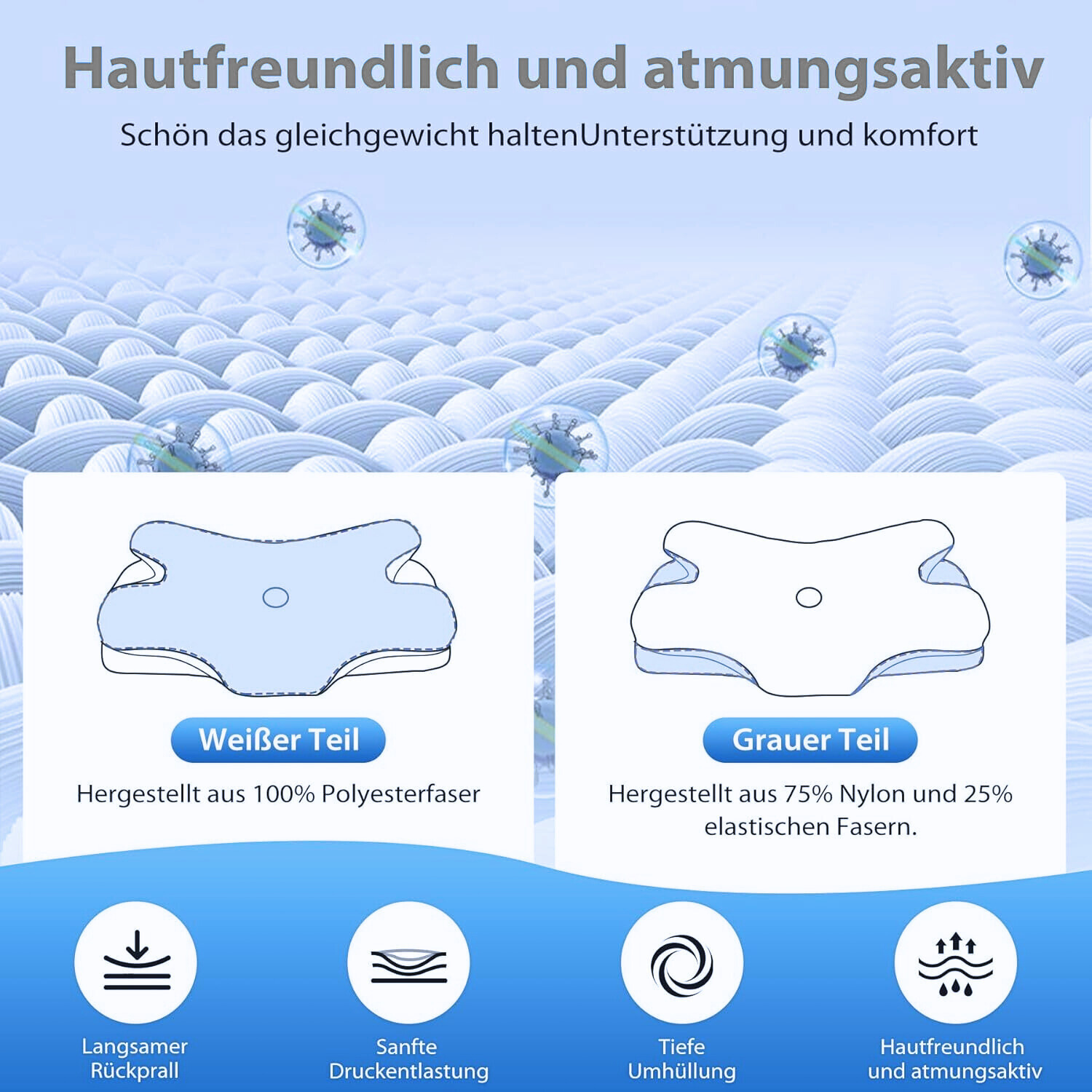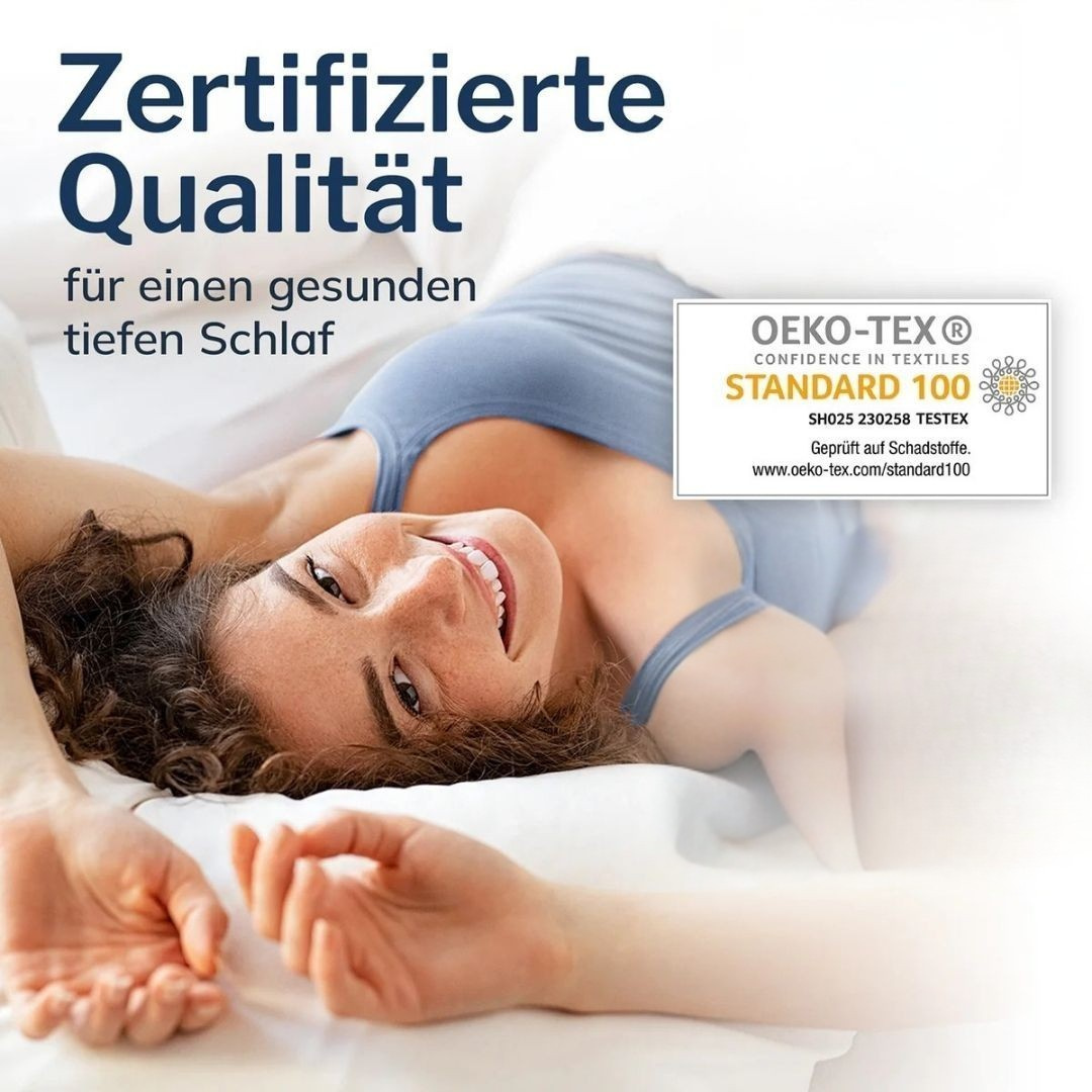 Atmungsaktive Materialien wie Lyocell-Fasern und offenzelliger Memory-Schaum sorgen für ein angenehmes Schlafklima.