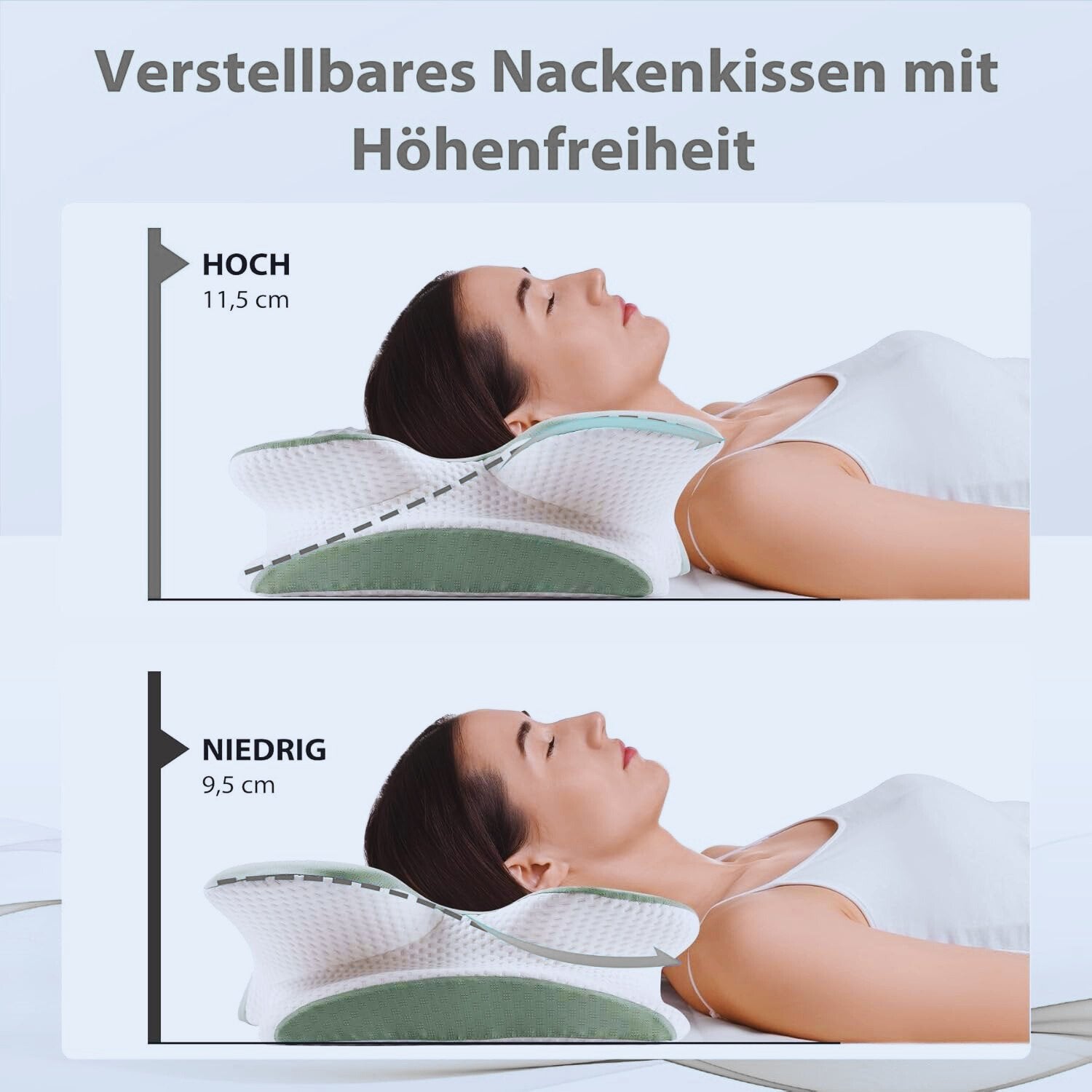 Viele Nutzer berichten bereits nach 1–3 Nächten von spürbar weniger Spannung im Nackenbereich – da die Halswirbelsäule in einer neutraleren Linie geführt wird.